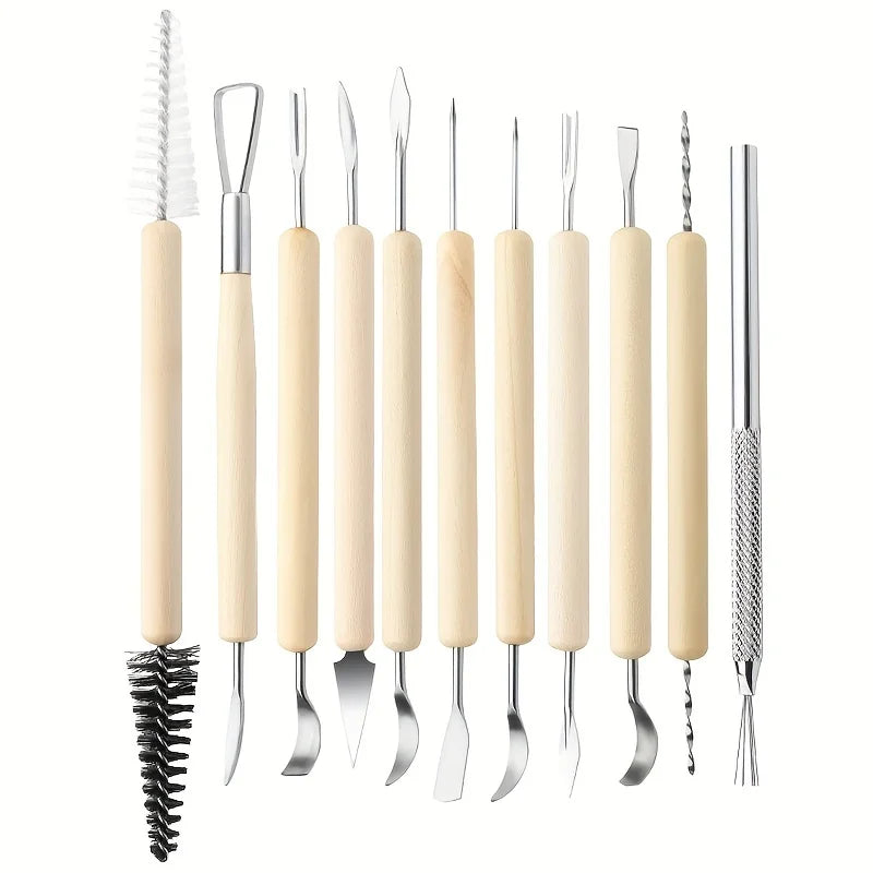 Art Supplies 11 PCS Sculpting Tools DIY Wooden Handles Ceramic Tools Beginners Arts and Crafts Wood and Steel Home School Use