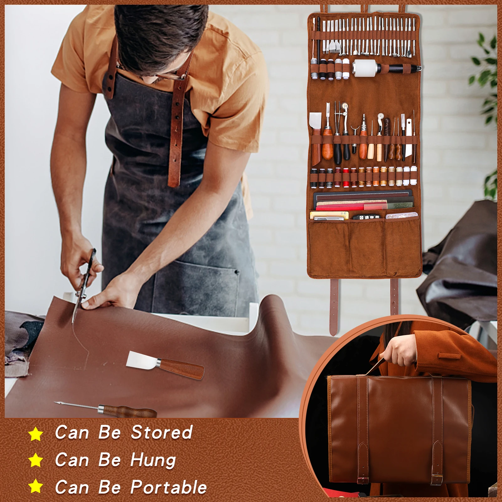 5.Perfect Leather Tool Set - With Custom Handbag: A portable storage bag has been specially customized for this professional leather crafting kit, and each leather tool has its own dedicated storage location. You can hang this leather craft kit next to your workbench so your tools are clearly visible and within easy reach. It can be folded into a handbag when going out, making it portable and beautiful. You can give this to your family and friends that they will love very much.